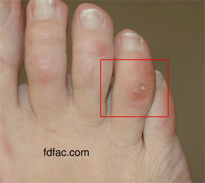 Here’s an image of a corn on the top of the 4th toe. You can imagine how painful this hard, dead skin can be.