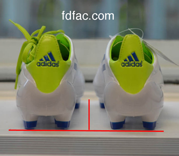 Here’s an image of a pair of Adidas F50 AdiZero TRX FG which rest level on a flat surface. This is what you want to look for when shopping for shoes.